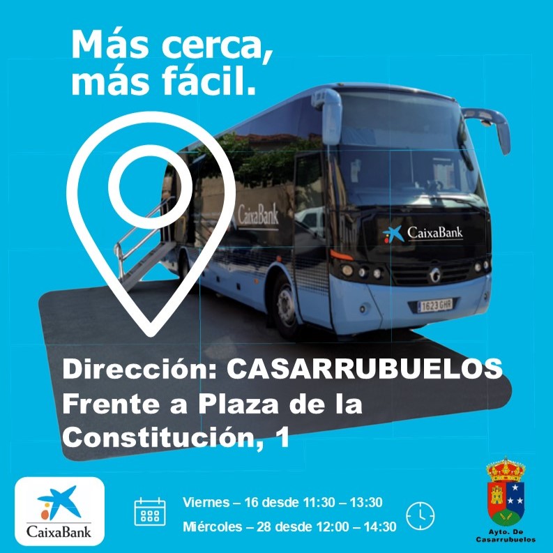 El Ayuntamiento de Casarrubuelos informa que el próximo Ofibús de CaixaBank visitará el municipio en dos fechas programadas durante el mes de mayo.