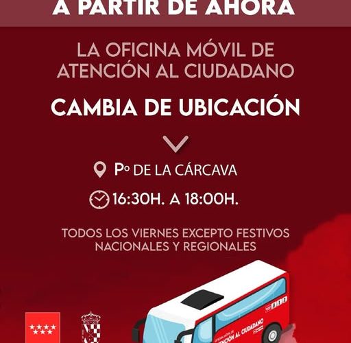 El Ayuntamiento de Griñón informa a todos sus vecinos que la Oficina Móvil de Atención al Ciudadano de la Comunidad de Madrid cambiará de ubicación a partir de ahora. Este servicio, que facilita numerosos trámites administrativos, atenderá a la población ...