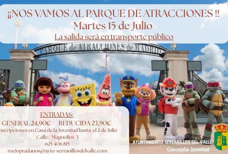 El Ayuntamiento de Serranillos del Valle ha anunciado la apertura del plazo de inscripción para la esperada salida al Parque de Atracciones que tendrá lugar el próximo martes 15 de julio. Las inscripciones podrán realizarse hasta el 2 de julio ...